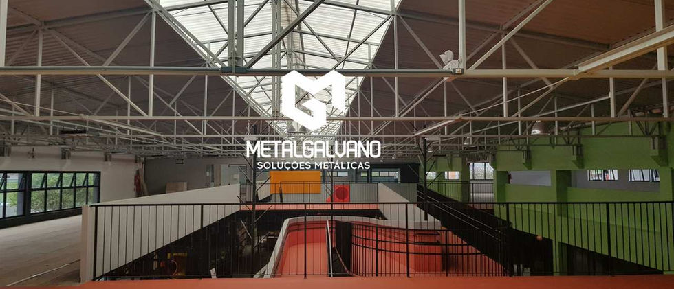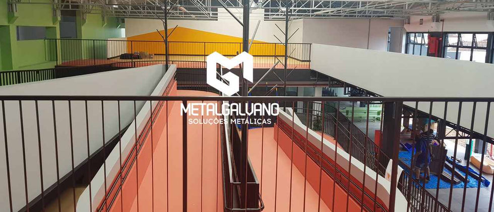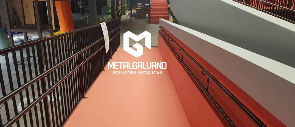 Estrutura metálica para rampa e mezazino medindo 202m² com piso painel Wall.