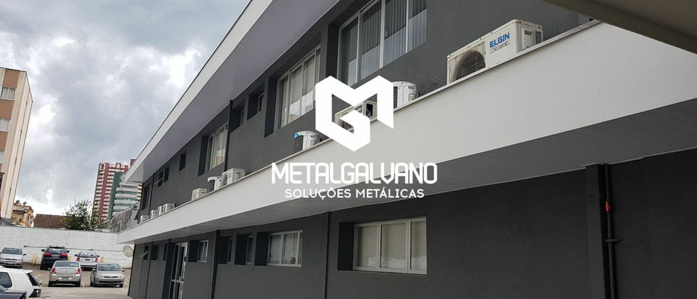 Estrutura metálica com revestimento em ACM Madeira Wood, medindo 120M² de área.